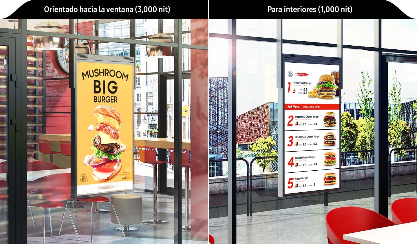 - 3.000 nit (exterior) y 1.000 nit (interior) con 6,000:1 de contraste, ideal para áreas con alta luminosidad o cambios abruptos.